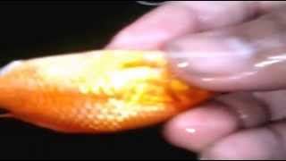 Ikan Oscar makan ikan mas dengan ganas
